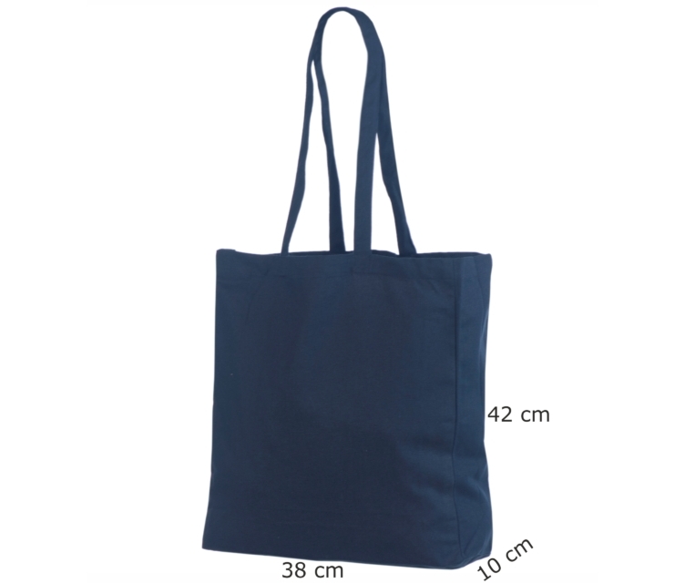 Premium kvaliteediga tumesinine riidest kott on valmistatud 220 grammisest puuvillast. Mõõdud: 38x10x42 cm.