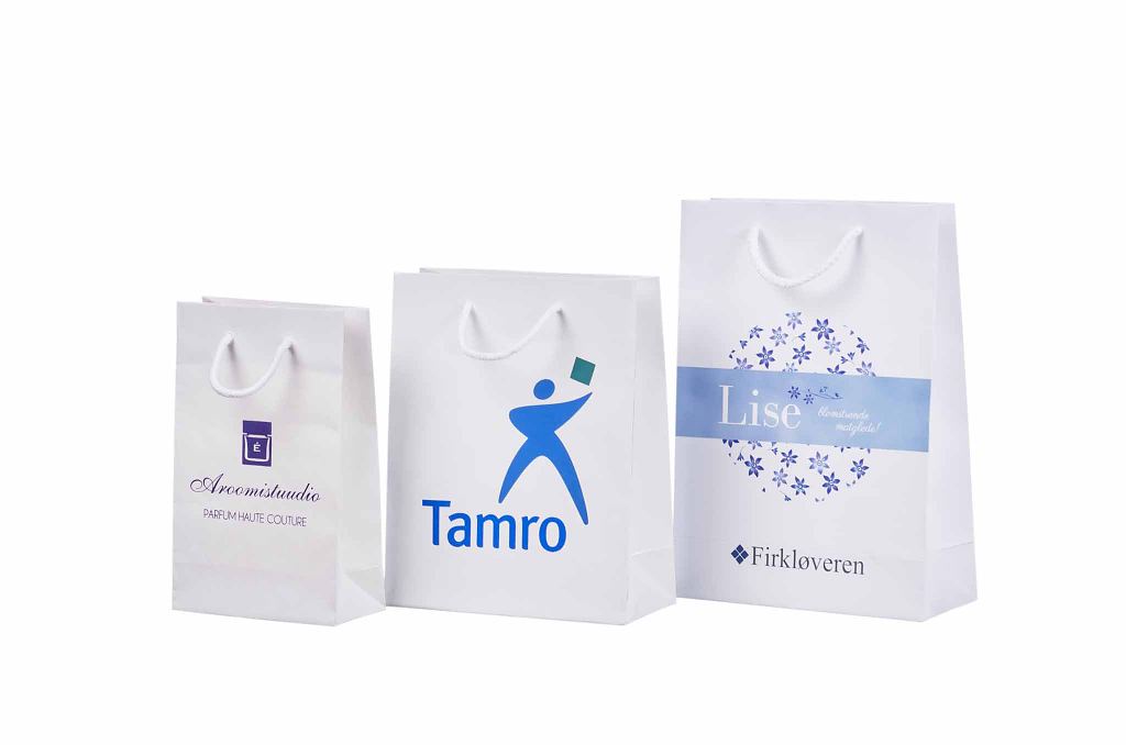 • Spesialtilpassede papirposer med trykk fra 50-100 stk.