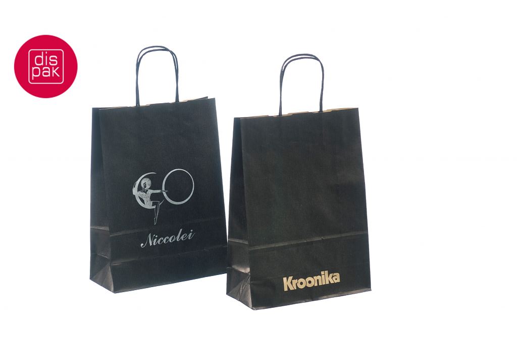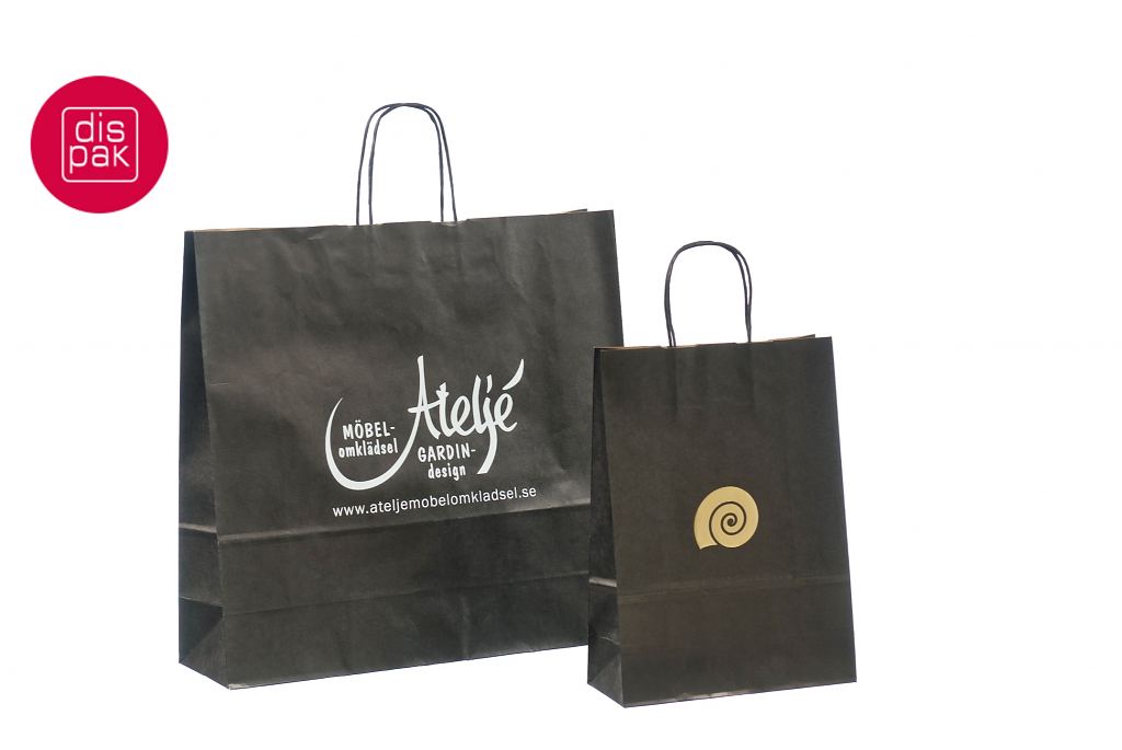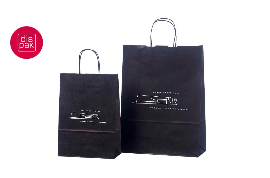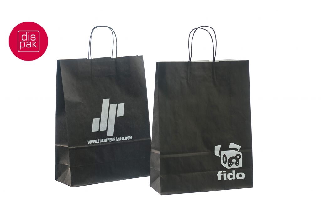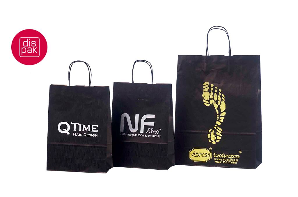 must paberkott | Fotogalerii- mustad paberkotid, millele trükitud klientide logod.