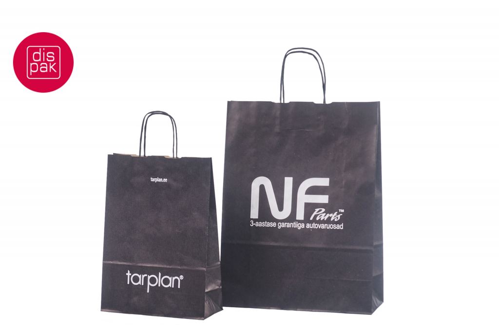Mustadele paberkottidele on võimalik peale trükkida 1 kuni 4 värvi. Kottidele trükime logo enamjaolt siiditrükis ja 1 värviga. Miinimum kogus trükiga kottidele algab 50 tükist.