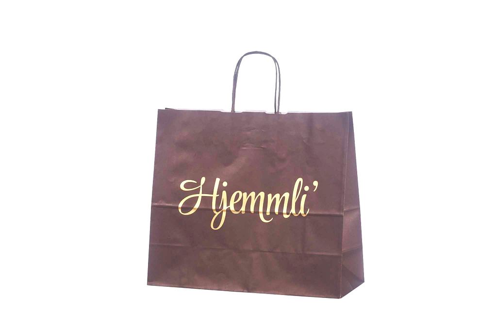 mørkebrun papirspose | Galleri af værker- mørkebrune papirsposer med tryk