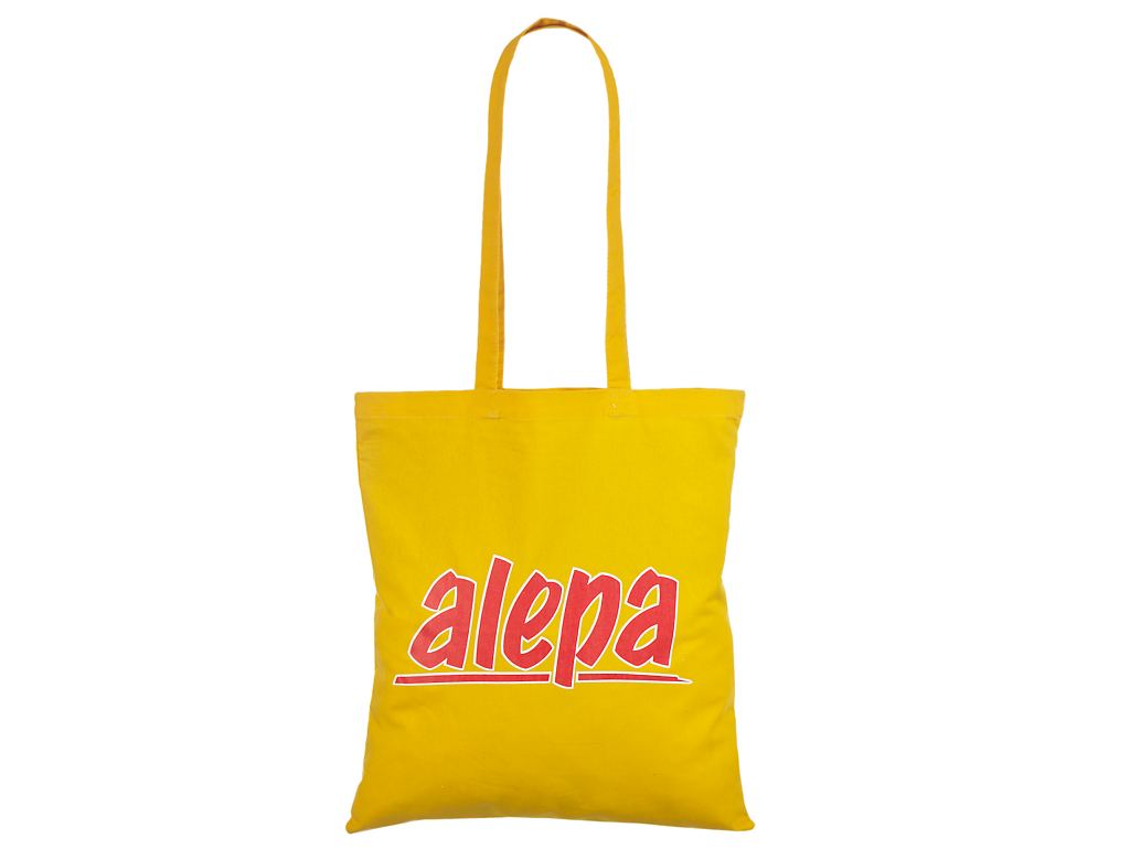 Fotogalerii- kollast värvi riidest kott trükiga Kollast värvi riidest kott personaalse trükiga. T