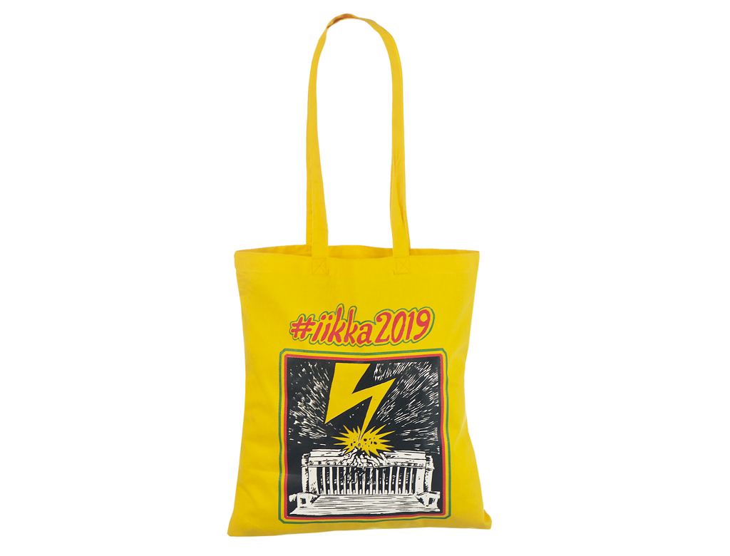 Logoga kollast värvi riidest kott . Trükiga kottidele miinimum kogus alates 50 kotist. Helista me