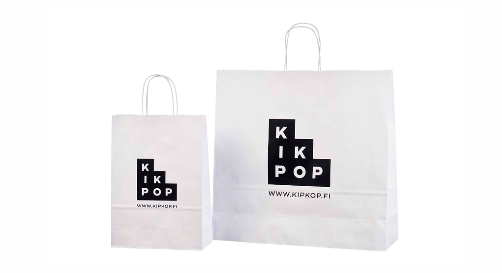 Asiakkaiden ostamat tuotteet voidaan pakata paperikasseihin, joissa on liikkeen logo, ja asiakas voi kantaa uudet vaatteensa tai tavaransa turvallisesti kotiin. Paperikassi on myös hyvä valinta elintarvikkeiden kantamiseen kestävyytensä ansiosta. |
