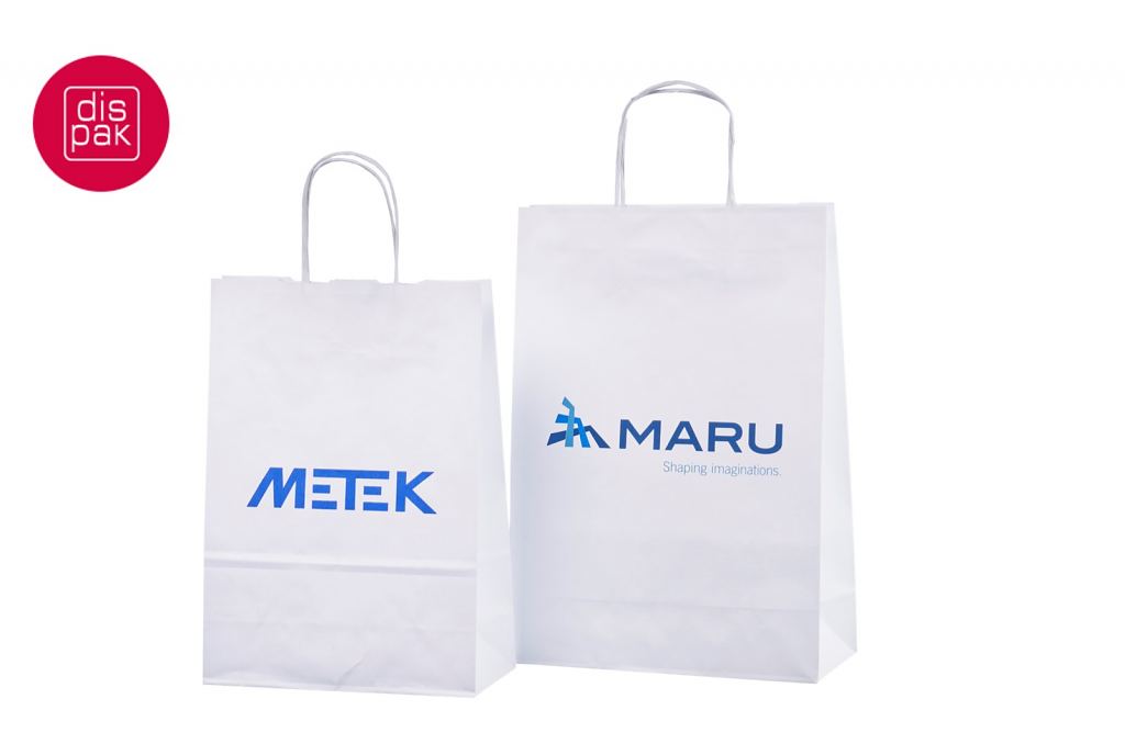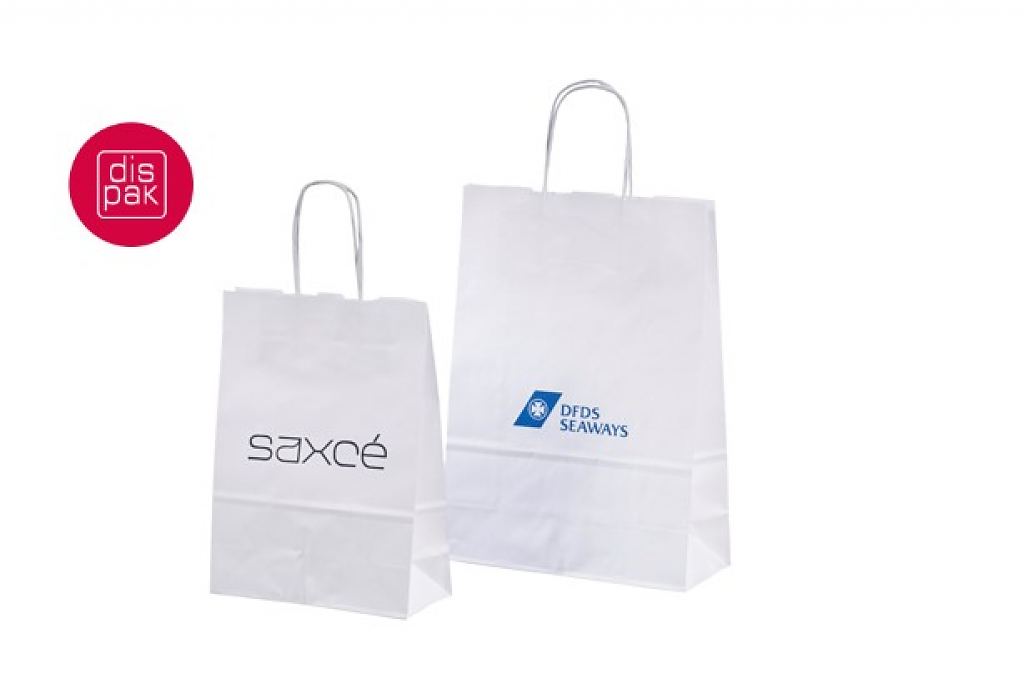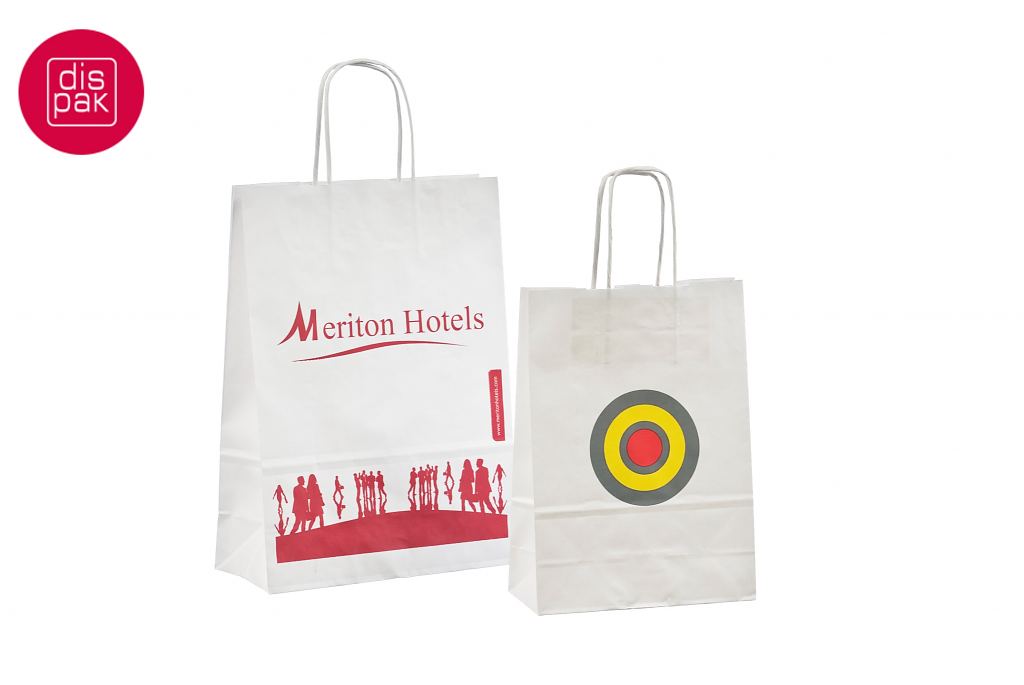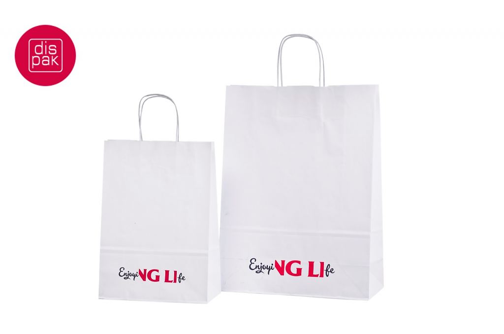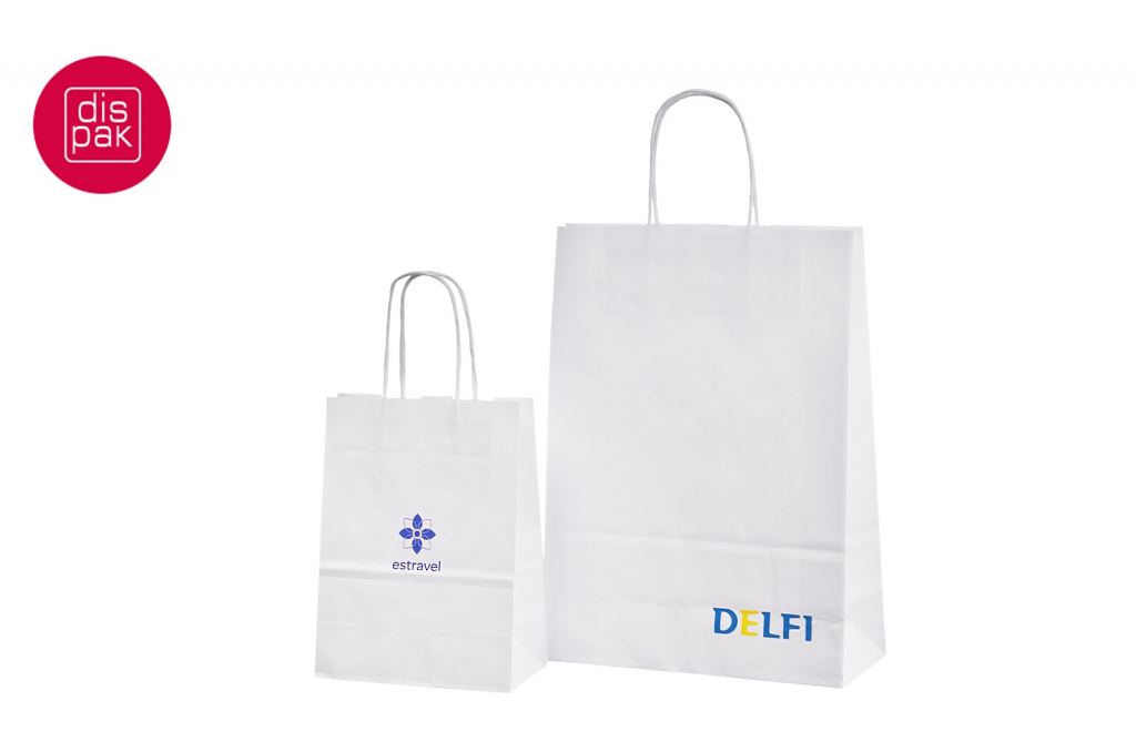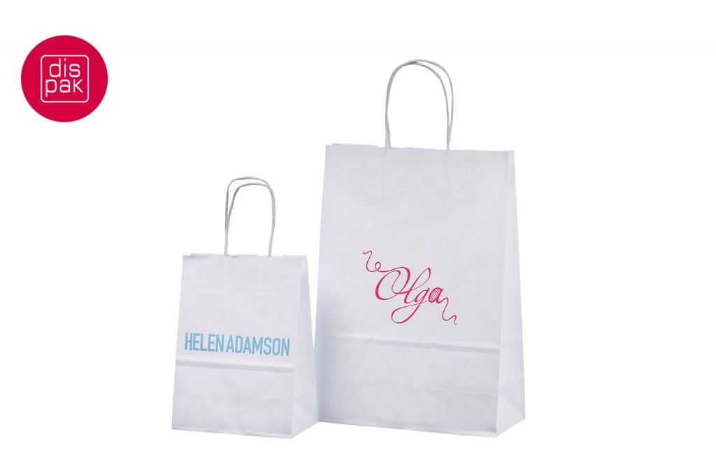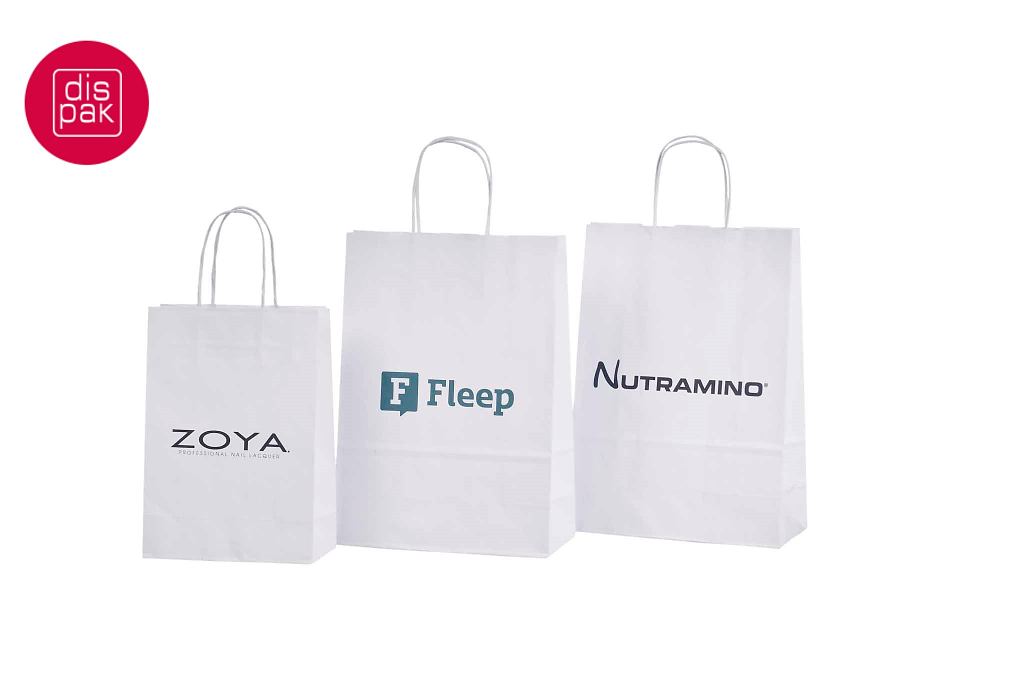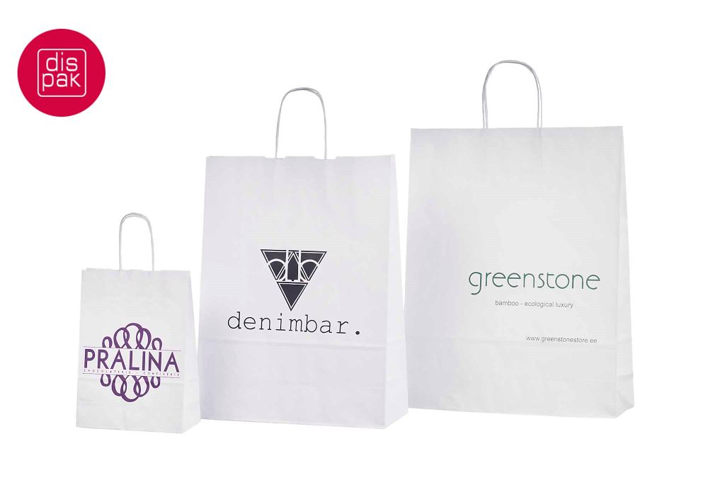 Vahvat ja kestävät valkoiset paperikassit. Kuljetus Suomeen ilman lisämaksua. Voidaan räätälöidä omalla logolla.