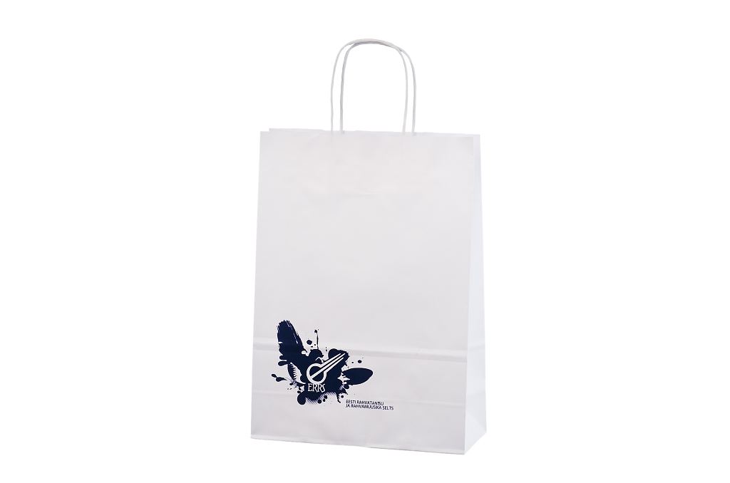 Vahvat ja kestävät valkoiset paperikassit. Kuljetus Suomeen ilman lisämaksua. Voidaan räätälöidä