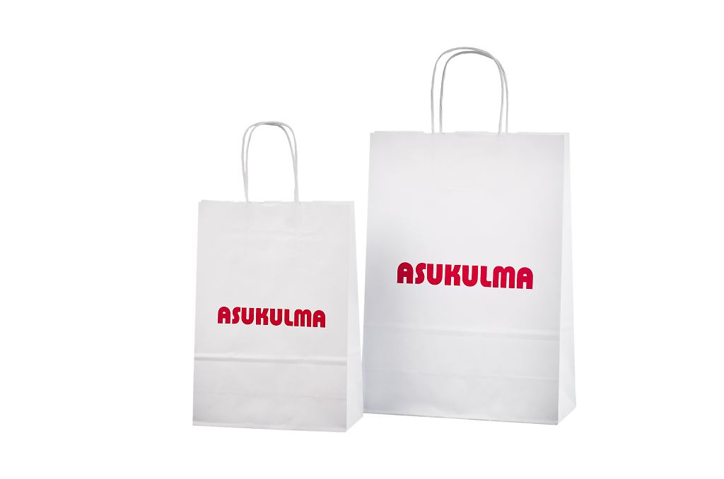 Vahvat ja kestävät valkoiset paperikassit. Kuljetus Suomeen.. | Referenssit-valkoiset paperikassi