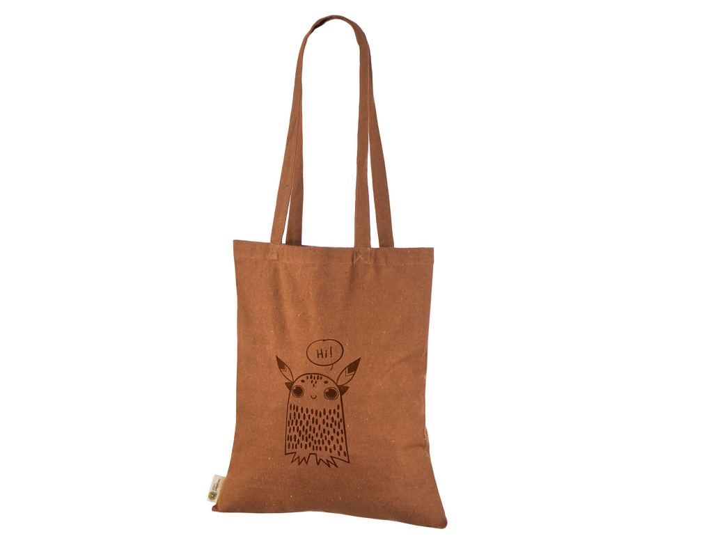 Hyvännäköinen ja korkealaatuinen ruosteenvärinen kierrätyspuuvillakassi. Saatavana yksilöllisellä painatuksella. Toimitus Suomeen on maksuton.