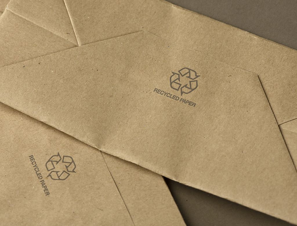 Серые подарочные эко пакеты изготовлены на 100% из переработанной бумаги.