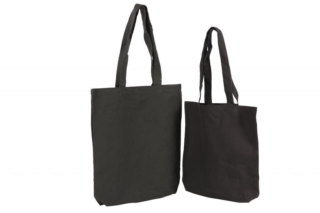 Vi tilbyder to størrelser af sorte muleposer i ekstra kraftigt bomuld